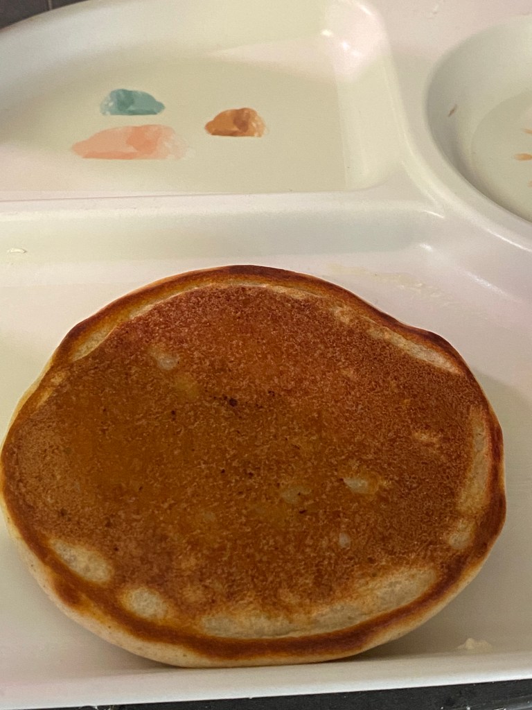My preferred batter so far has been Almond Flour with Buckwheat Flour. 1:1 ratio of the flours but this one is pretty great too. same measurements but the almond flour one needs extra sweetener. It helps give the almond flour strength and makes it feel more like regular pancakes. Something my hubby misses. Me, I like them now and then and could easily do without pancakes but my family likes them so I make them. Baby has to be gluten free and they tend to be a dry pancake so I like to serve with yoghurt or baby custard. He loves it with strawberry yoghurt or lemon cream yogurt. If I give banana he will just eat the banana and ignore the pancake. But totally normal toddler behaviour. I just give him his breakfast with some of the least preferred first then the preferred after. He usually only eats about half a small pancake. Which is more than enough. I usually eat his other half. The dogs eat up whatever baby throws which is probably about half of his half a pancake if he is feeling moody.