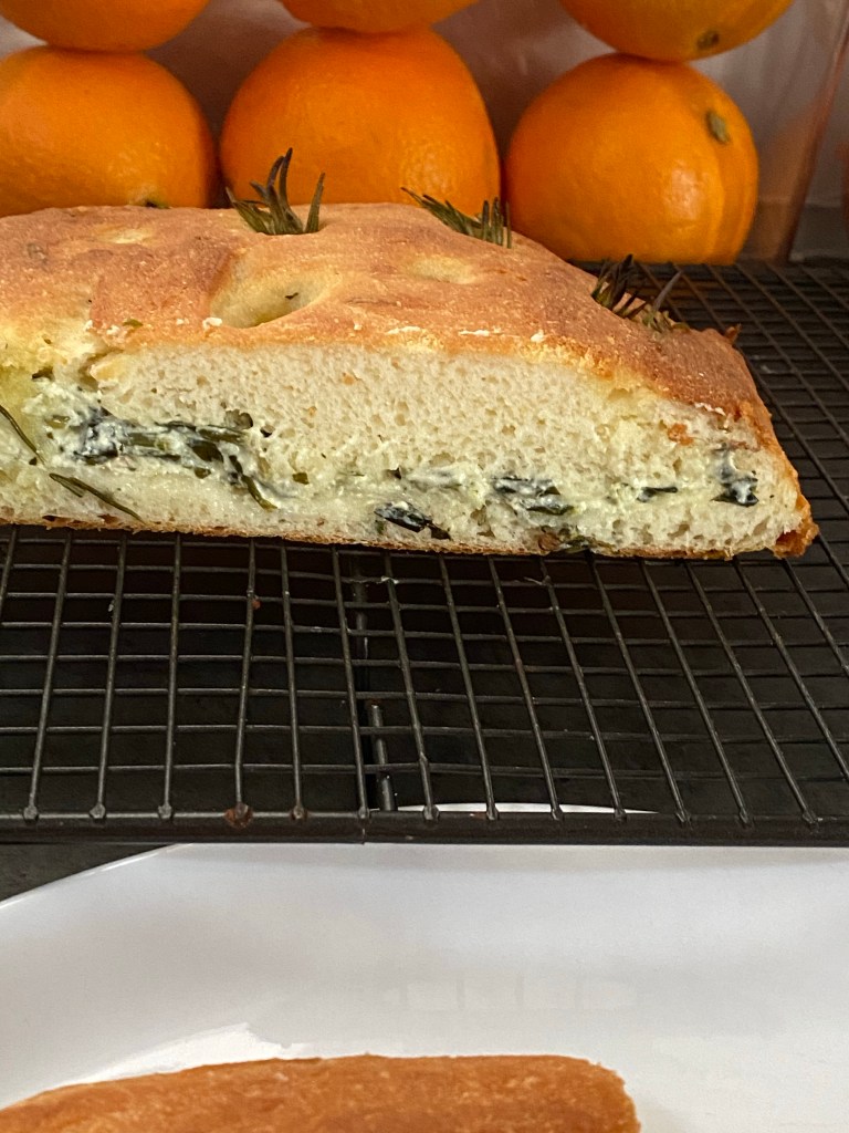 I intended for this to be a focaccia but half way through adding the dough I decided to use remaining filling from another meal. I had cream cheese, salt and garlic mixed with spinach that needed to be used. I followed a recipe on YouTube by The Gluten Free Blogger. This video specifically https://youtu.be/oxsiEif_ew8