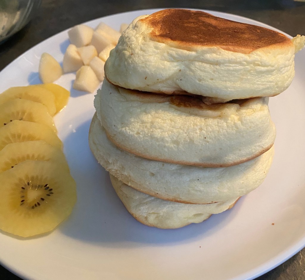 Of course the bottom one was too dense but it worked so much better with less flour. I noticed no real difference with or without the tartar powder. Quite simple but also easy to mess up. Steam and low temp are essential for maximum rise and the best texture. Wonderful pancakes!