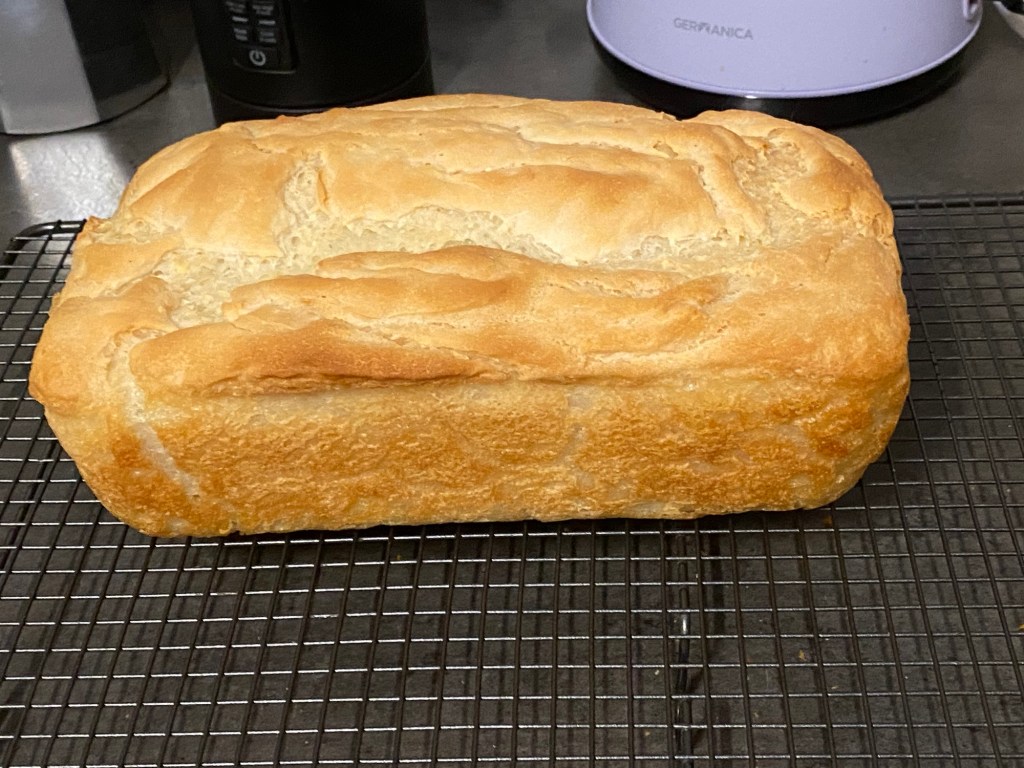 Bake on 200 degrees Celsius fan force, 220C for regular oven for 40-55 minutes or until golden brown. Give the bread a tap for a hollow sound. Tap along the length listening for any potential dense spots. Allow to cool in pan for 10 minutes then remove to cool on cooling rack.
