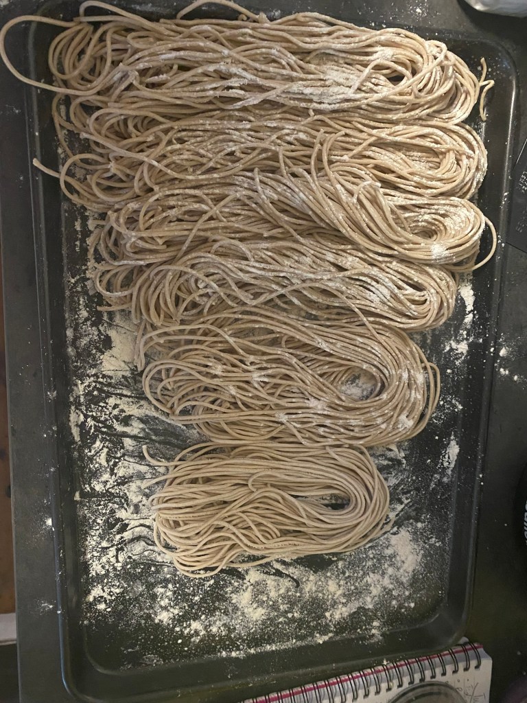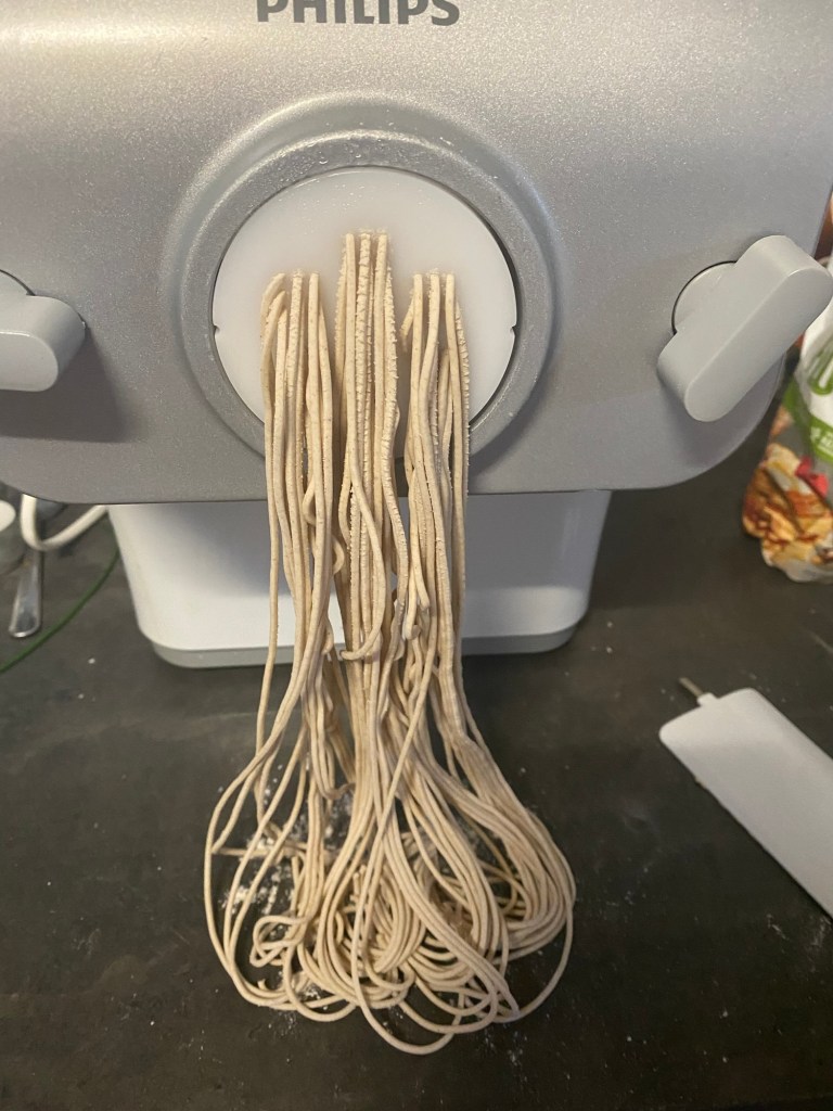 I use a Philips pasta maker. Mine is 10yrs old now. Ten years ago I wasn’t gluten free and my husband hadn’t discovered he had coeliac disease. Ten years ago I followed the book instructions for buckwheat noodles. They were brittle and terrible. Above is my buckwheat noodles with what I know now.